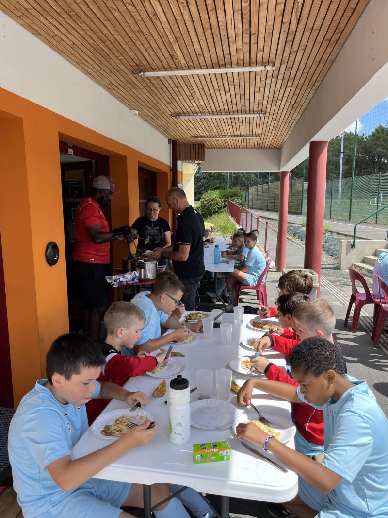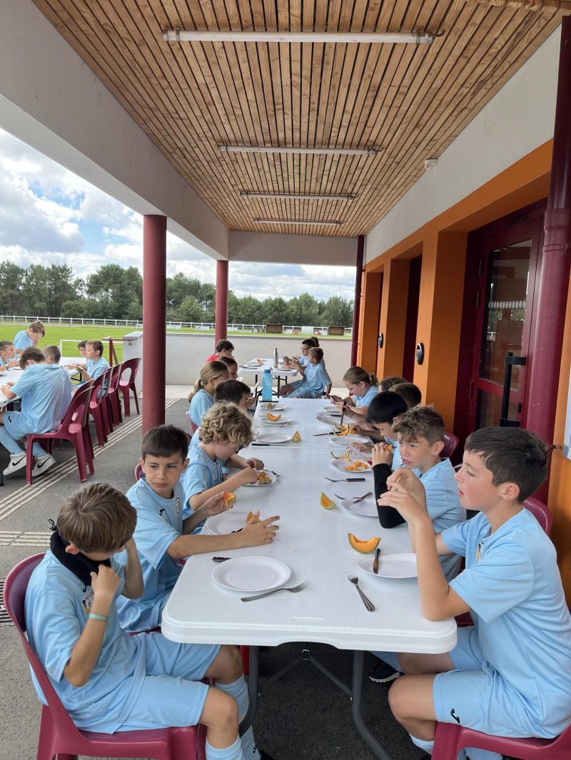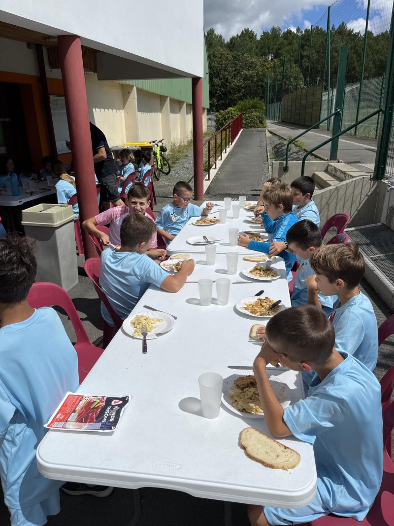 Le midi, après le repas, les jeunes ont participé à des jeux collectifs et ont regardé un match à la télévision.