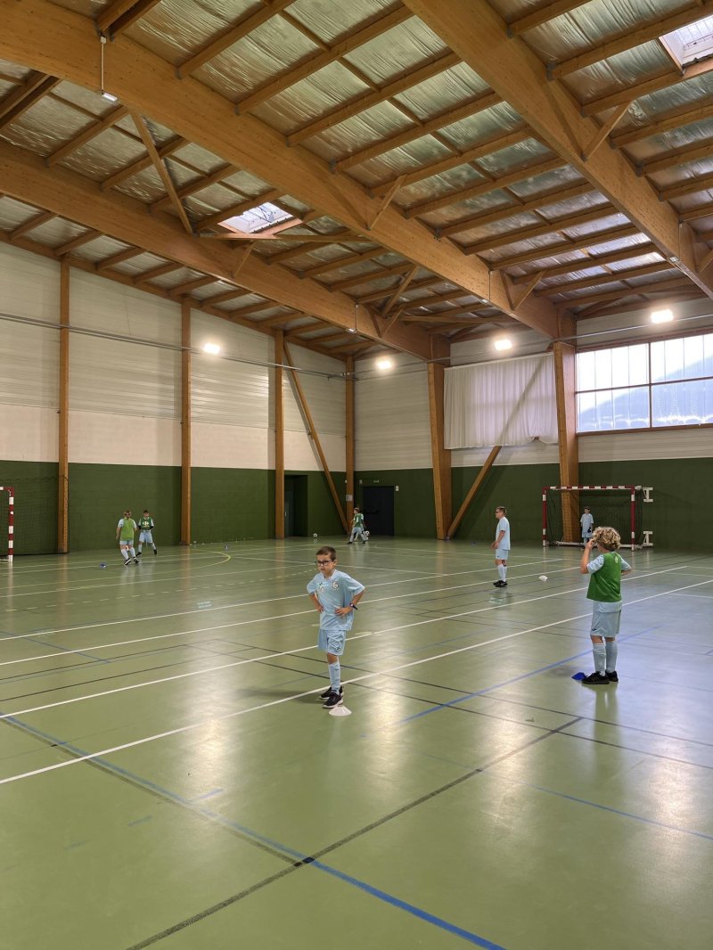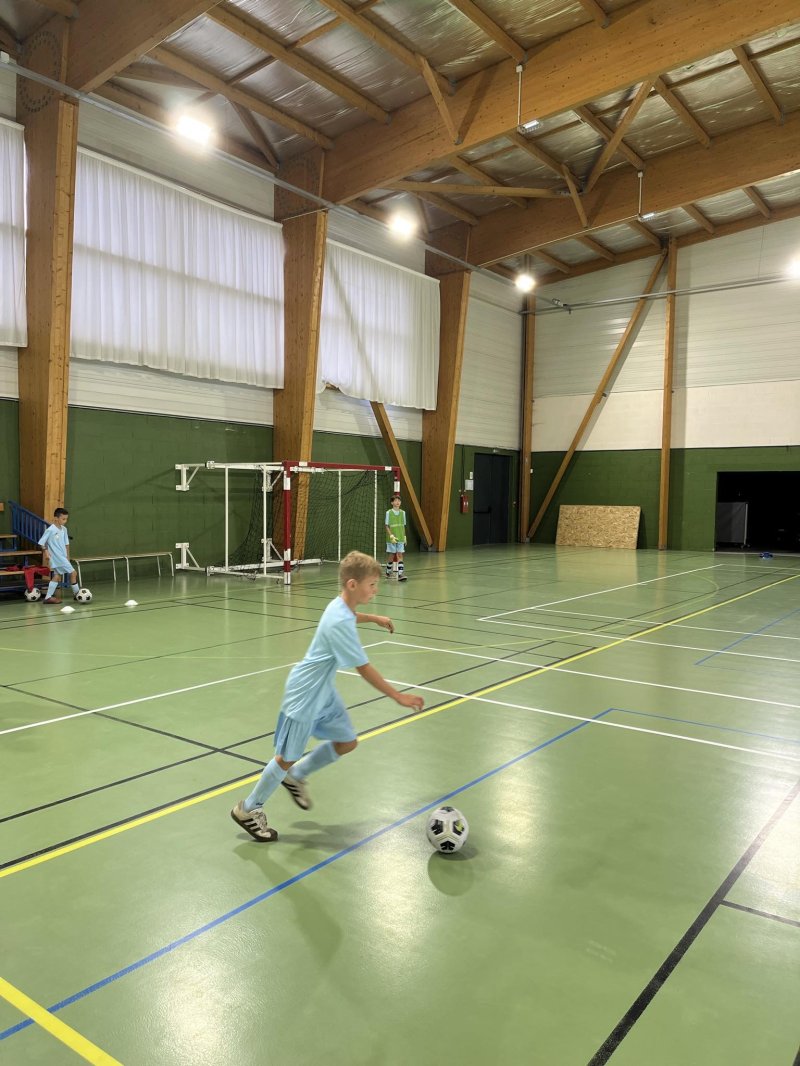 La deuxième journée du stage a commencé par une séance d'échauffement en salle. Les jeunes ont suivi un circuit de passes avec finition et se sont affrontés en duels 1 contre 1.